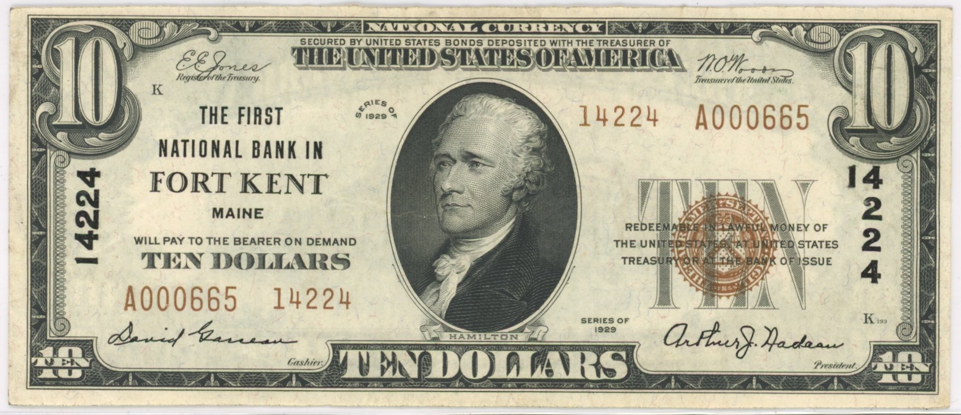 The First National Bank of Fort Lee. 1929 Type 1 $10 Note Charter #8874