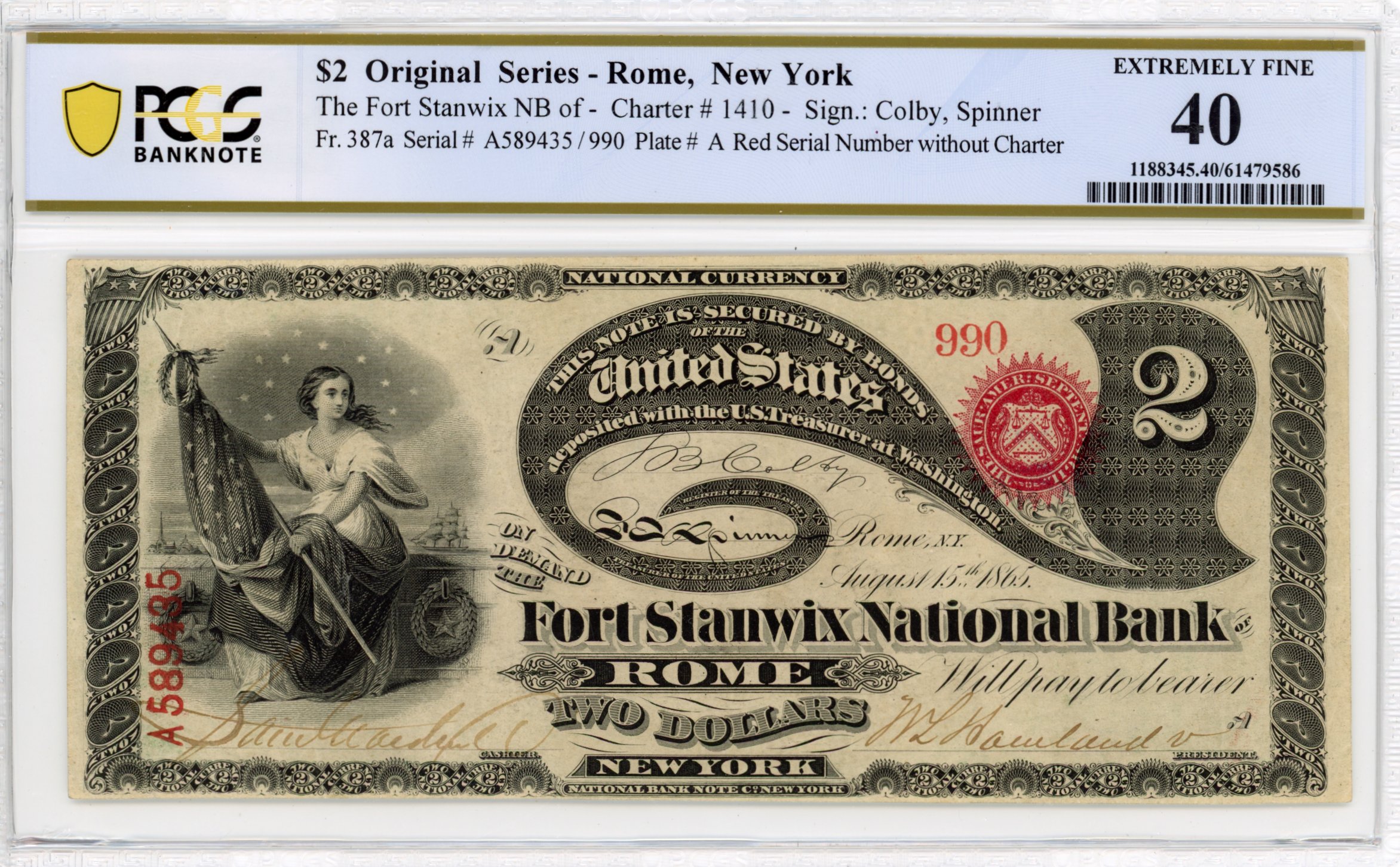 The Fort Stanwix National Bank of Rome. 1882 Brown Back $5 Note Charter #1410