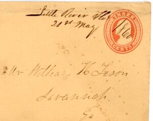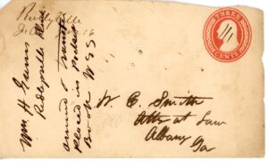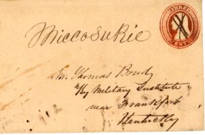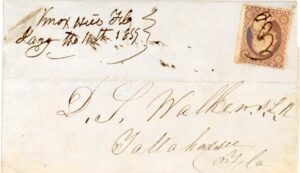 Marion M. (Middle) Florida Feby. 26, 1844 Type I. only 2 known both in this collection, pictured in Briggs, folded letter to Thomasville Geo. Rare use of “M” denoting middle Fl.