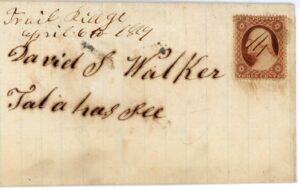 The Act of March 3, 1855, required that from and after January 1, 1856, all United States mail have postage stamps fixed by the writer or by the postmaster to reflect the pre-payment of postage. This date of January 1, 1856, marks the “official philatelic” end of U.S. “Stampless” markings are known well after this cut off date.