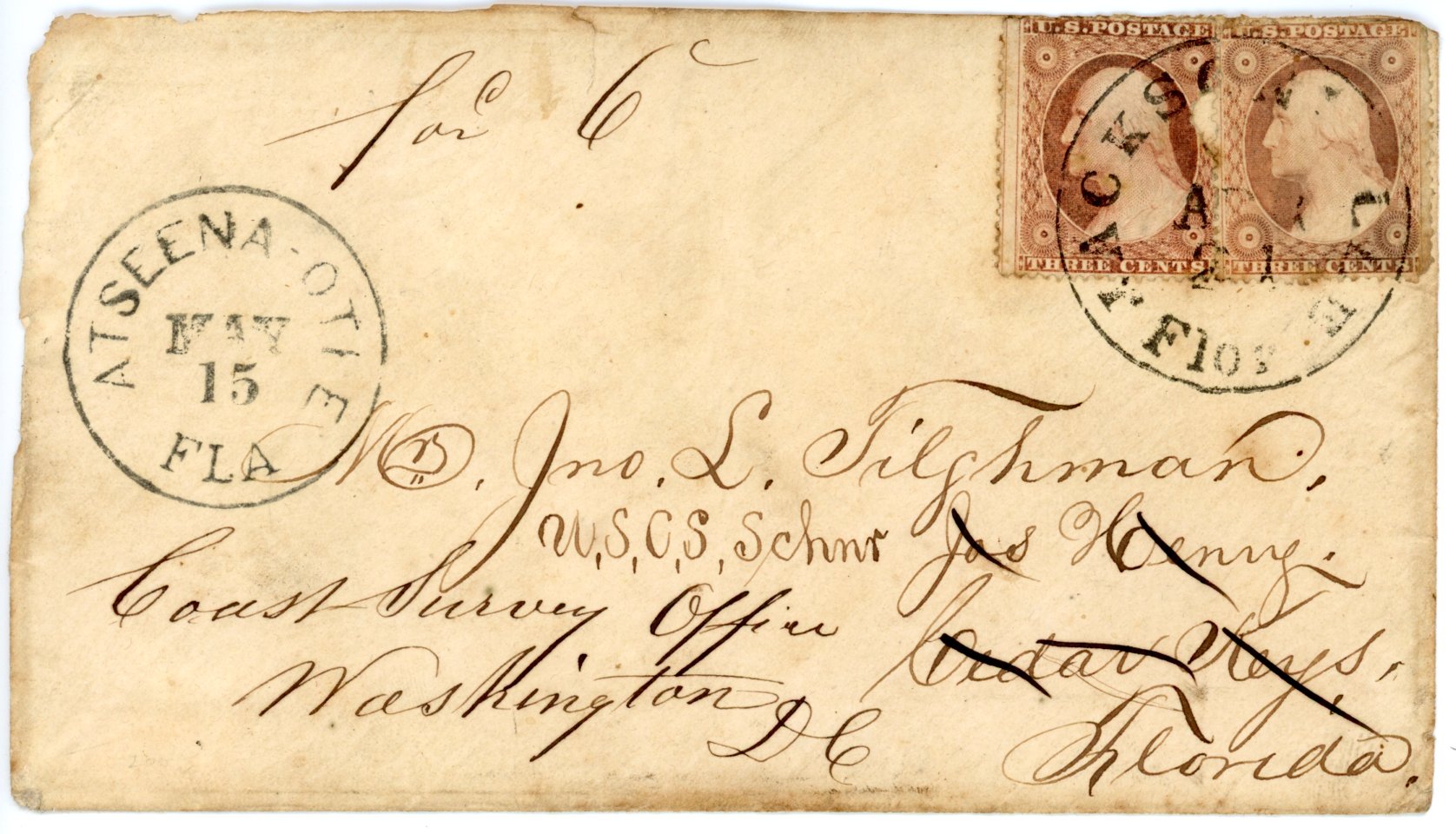Dozens of named forts and camps were established in Florida (particularly during the Second Seminole War), but most of these were not designated as U.S. Post Offices. Mail from these camps and forts was usually carried to the nearest Post Office, and much of such mail bears the postmarks of Jacksonville, St. Augustine, Tallahassee, Tampa, and Savannah, Ga. Some of the forts which were Post Offices during the war were discontinued after troops were withdrawn, and some which were not post offices were established as such after the war.