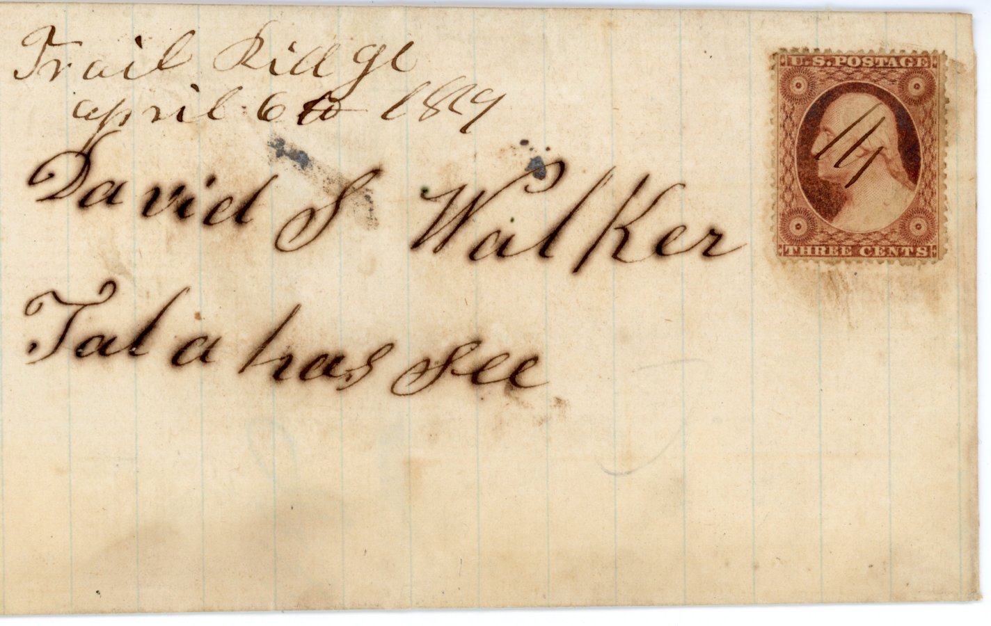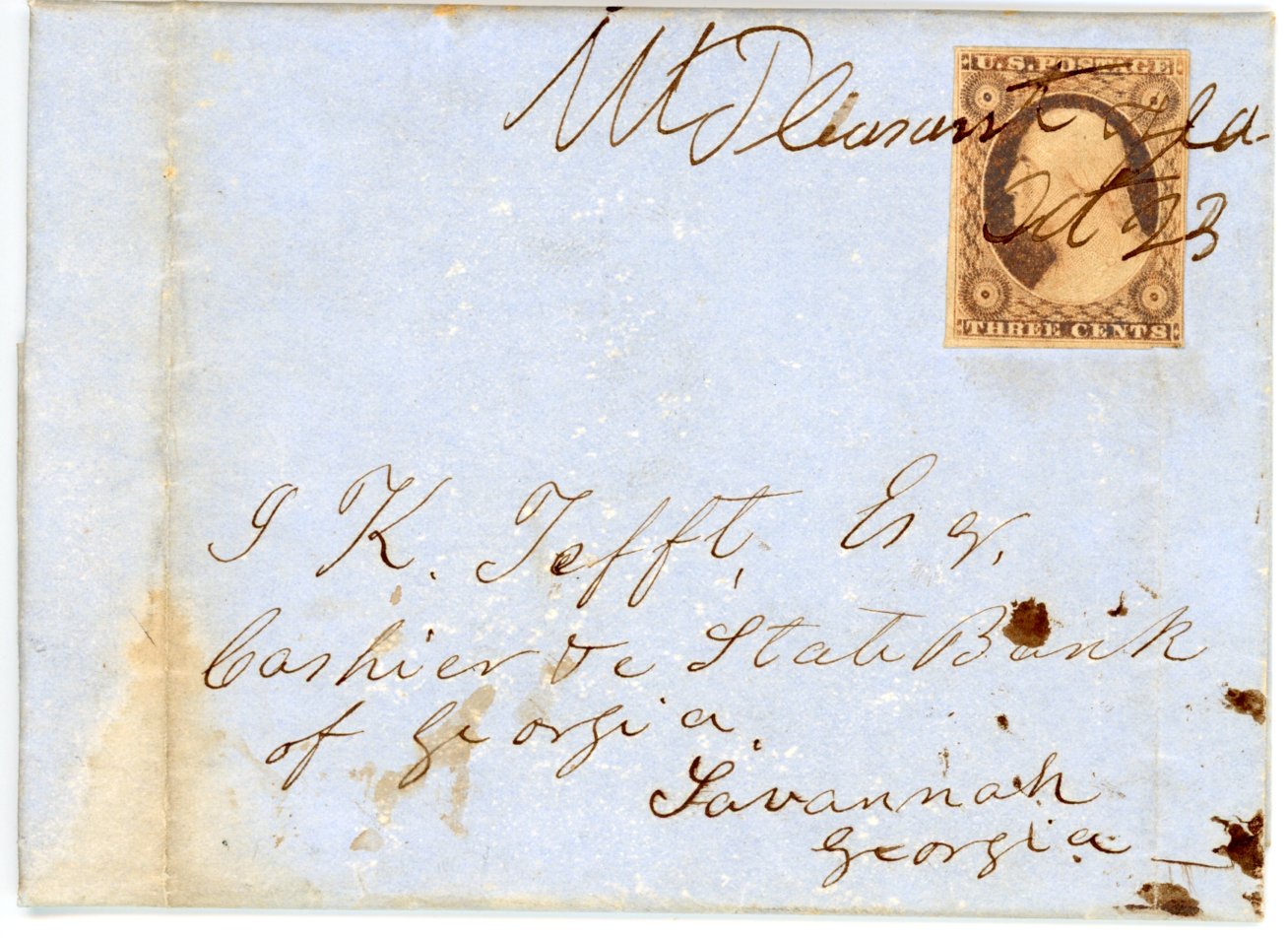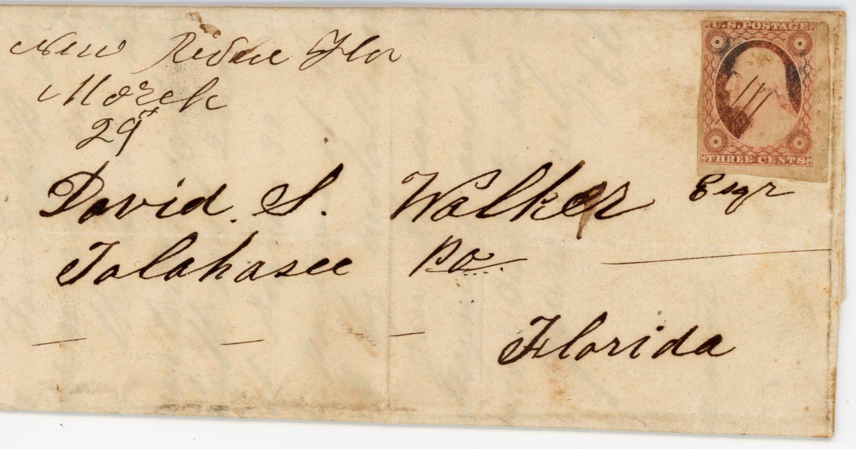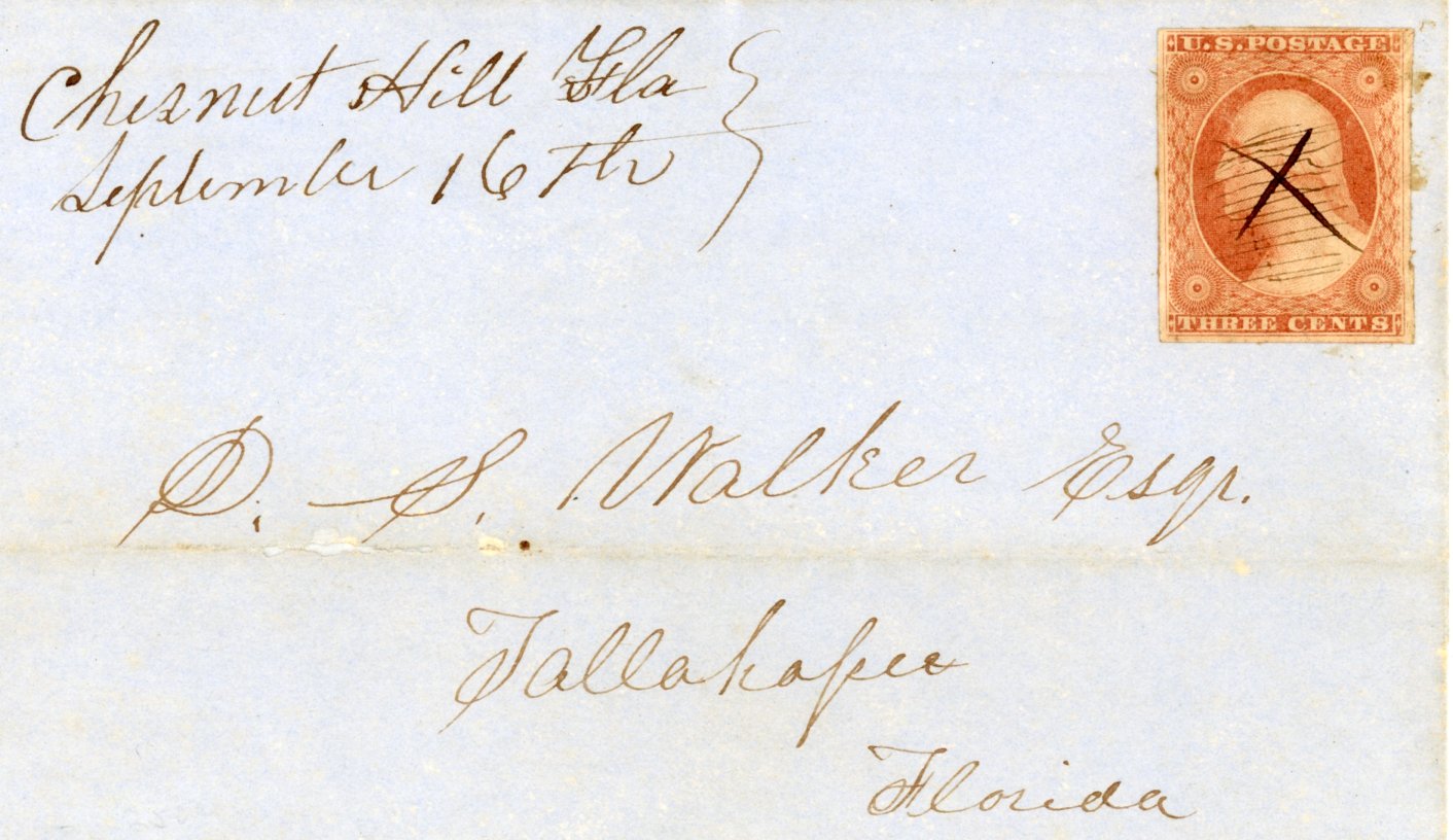 Madison, Fla. Oct.2, 1843. Type III. Datelined Sept. 30, 1843,  Folded letter pictured in Briggs only 3 known.
