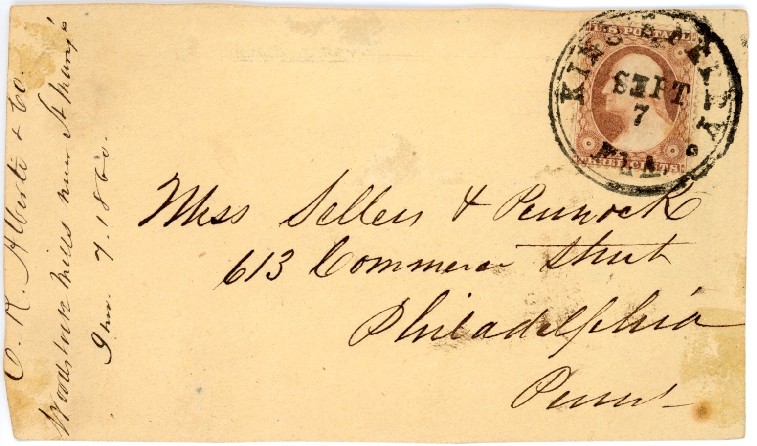Mineral Springs, Fa.  Sept. 22, 1836. Type II. Rare only 2 known Election Office cover.