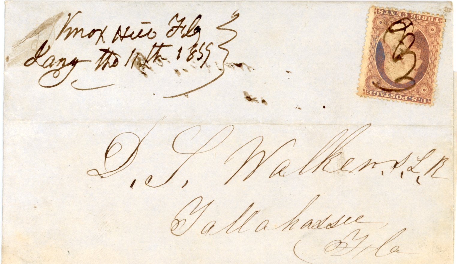 Jasper, Fla.  Dec. 18th, 1842.  Type I.  Folded letter DL. Hamilton County 5 known.