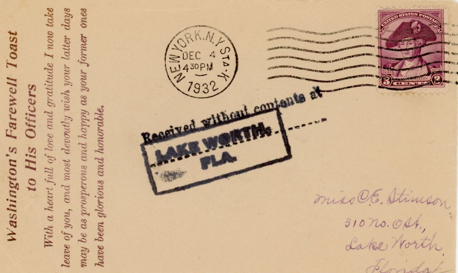 Lantana, Palm Beach FLA.  1892 to Dec. 31, 1955.