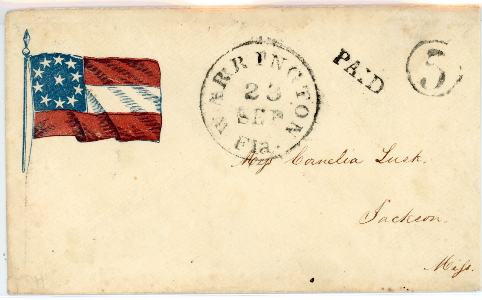 Marianna, FL.T. SEP 29, 1837. Type V a “FREE” to: “The Honorabel Charles Downing Washington City D.C. Folded letter.