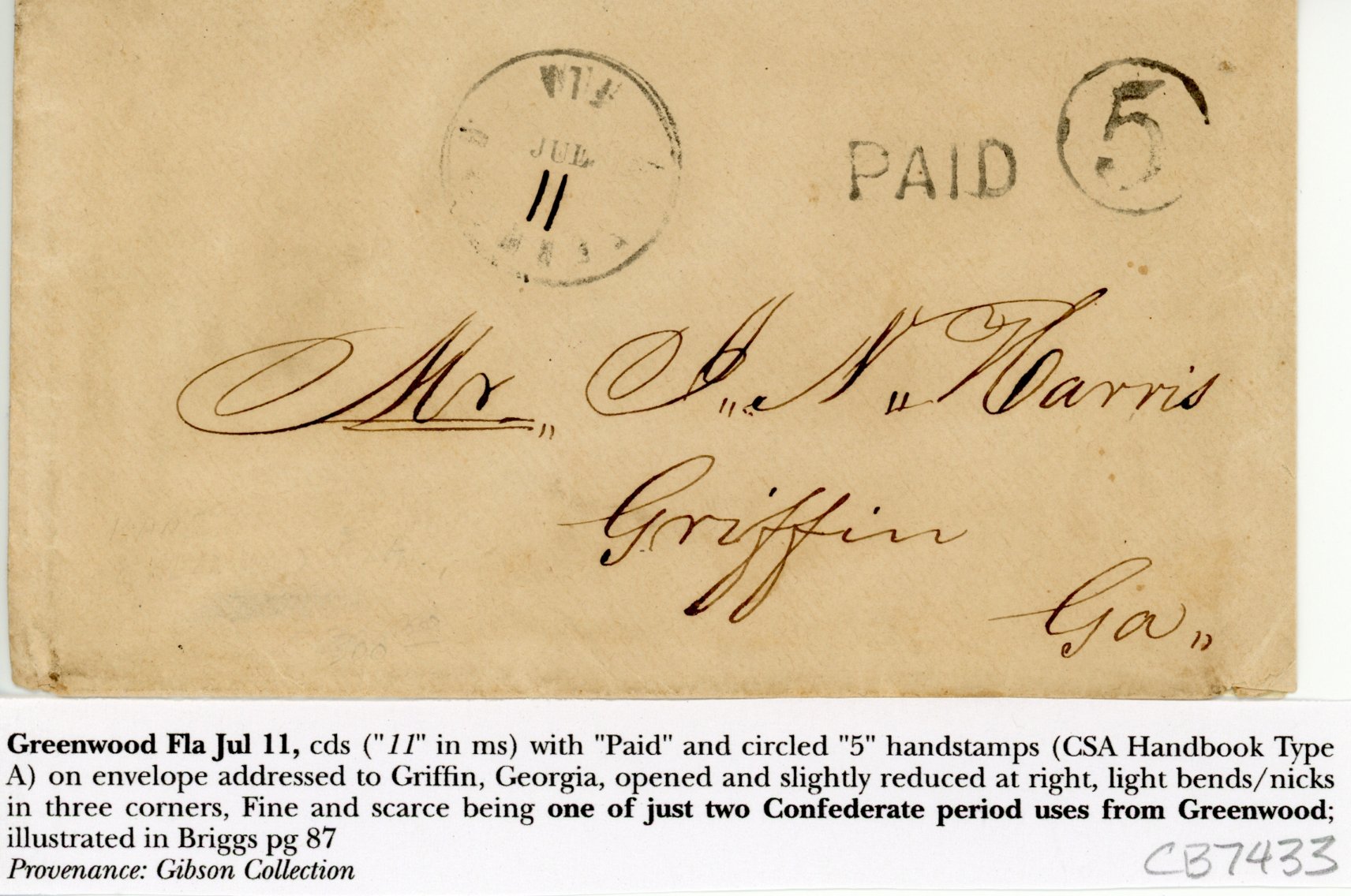 Miccosukie, Flor. March 20 “18 3/4” Type IV. Unique pictured in Briggs (cover)